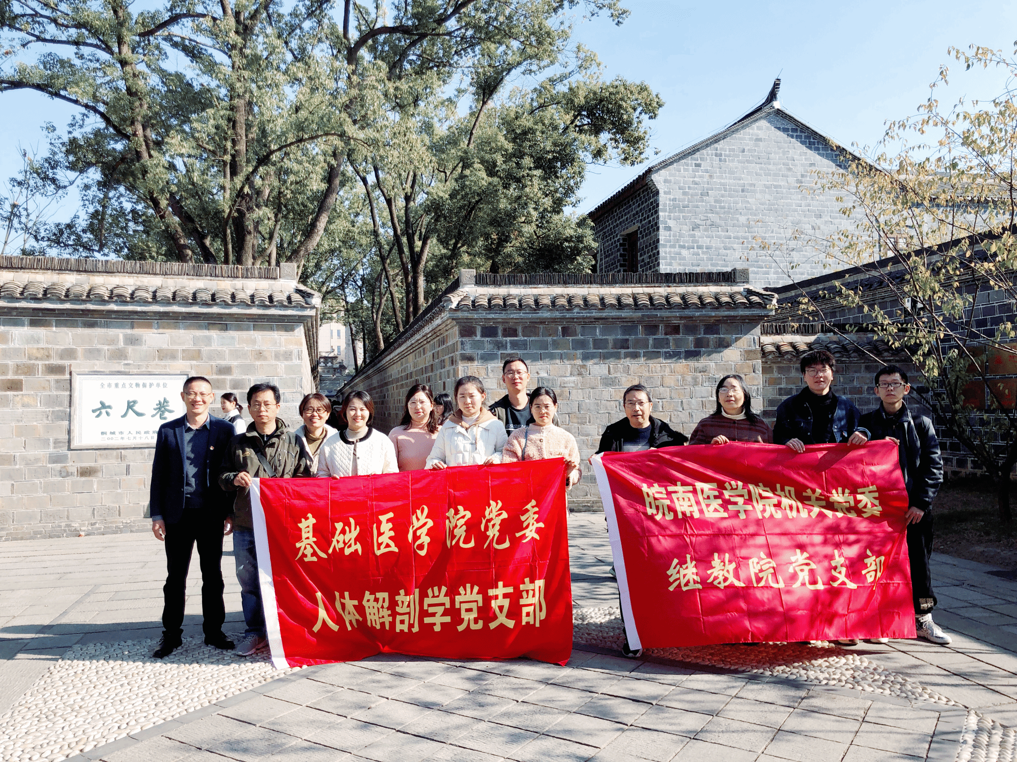 为深入学习贯彻习近平总书记考察安徽重要讲话和党的二十届三中全会精神,进一步推进党纪学习教育常态化,12月1日,人体解剖学党支部联合校机关党委继教公司党支部赴安庆六尺巷开展主题党日活动。
