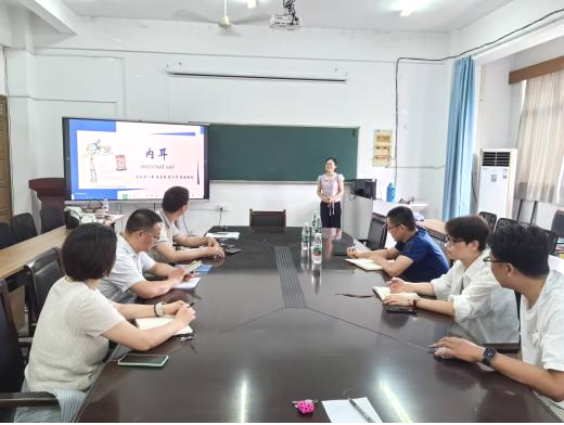 指导现场,人体解剖学教研室熊钱颖对所有参赛授课内容进行了汇报试讲,与会人员针对教师的表现逐一进行点评,包括教学内容的设计、教学时间的控制、教学亮点的突出、教学模型的利用、板书的设计优化、教学仪态的呈现等方面均提出了一些意见和改进措施。马旭明对参赛教师的赛前准备和教学能力给予了充分的肯定,同时指出了讲授过程中存在的问题并提出具体建议,希望参赛选手能继续保持良好的精神和心理状态应对比赛,力争取得佳绩。