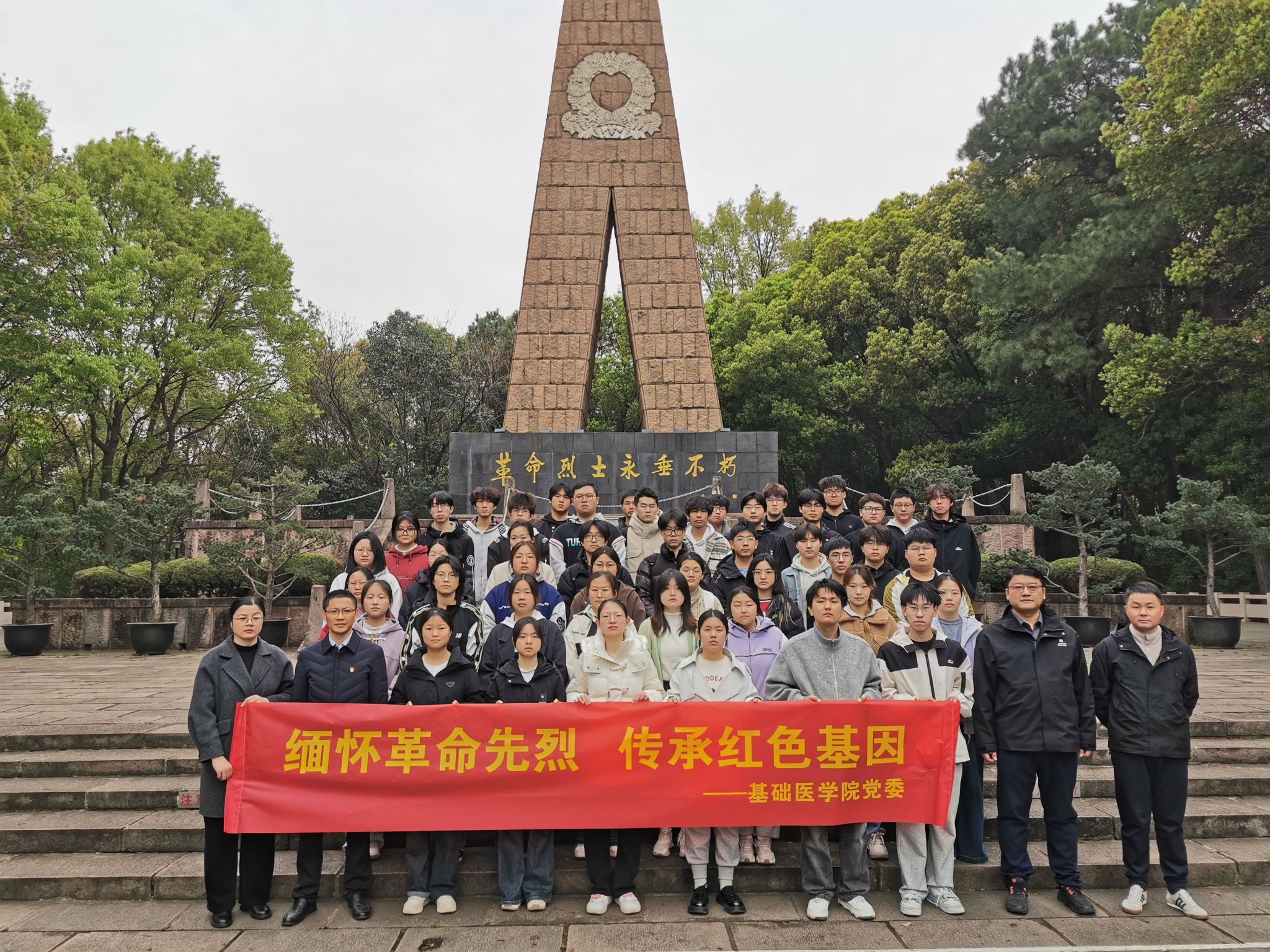 "我志愿加入中国共产党,拥护党的纲领,遵守党的章程……"在公司党委书记马旭明的带领下,全体教师党员面向烈士纪念碑重温入党誓词.23级基础医学1班团支部书记高胜男同学带领全体员工团员重温入团誓词。铿锵誓言在陵园上空回荡。在事迹陈列馆内,泛黄的家书、斑驳的军功章、复原的战斗场景让历史变得触手可及。