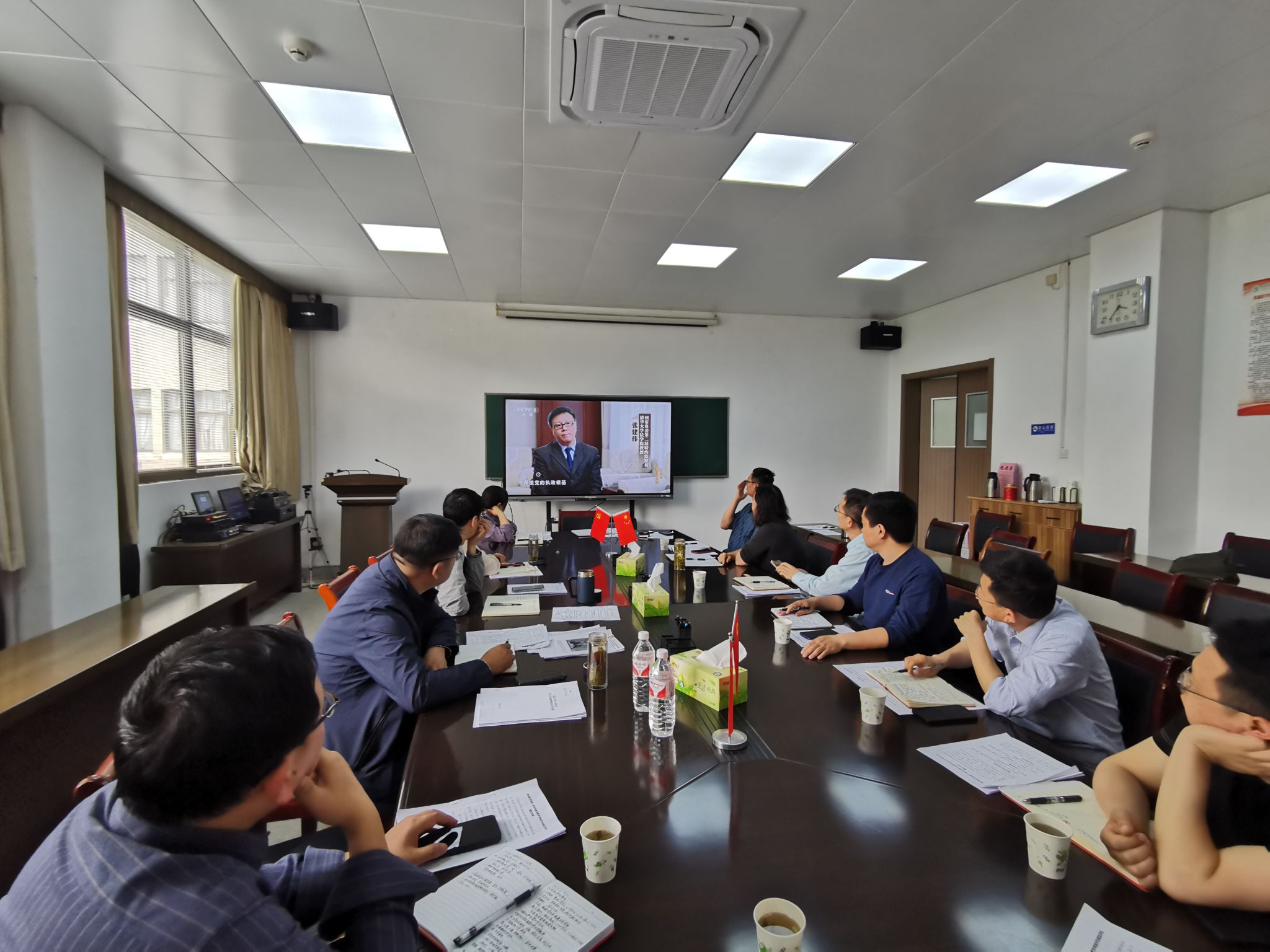 会议最后,全体参会人员共同观看了廉政警示教育片《反腐为了人民》视频内容。(卞显洋/文、供图)