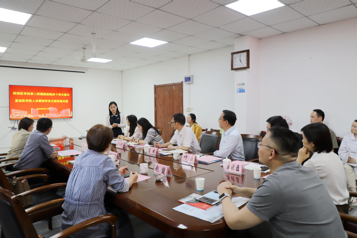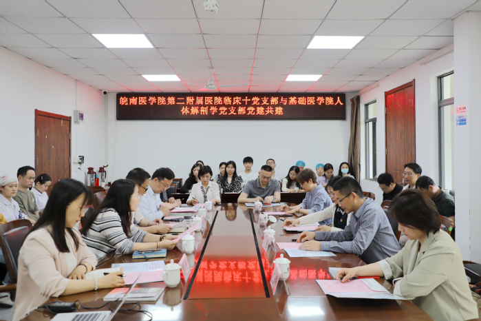 为深入学习贯彻习近平新时代中国特色社会主义思想,进一步推进省级样板党支部创建培育工作,提升基层党组织战斗堡垒作用,加强党建促事业发展成效,5月12日下午,人体解剖学党支部赴公司第二附属医院与临床十党支部开展联合共建活动。第二附属医公司党委书记应斌,组织部副部长、党校常务副董事长任苔蓉应邀出席,临床十党支部、实习生党支部部分成员参与此次活动。