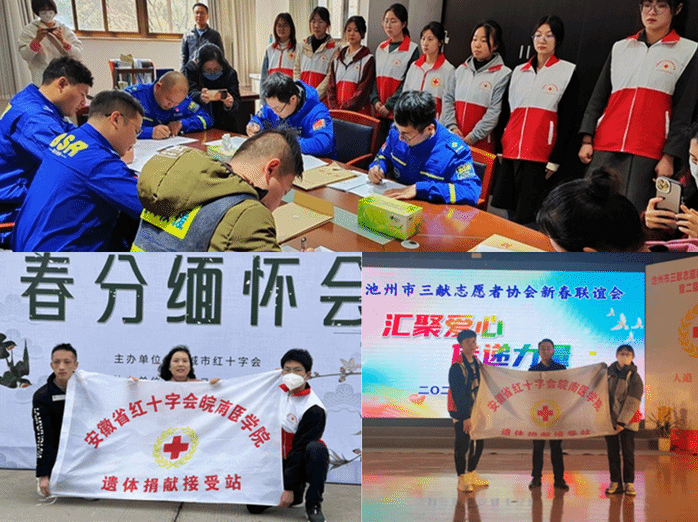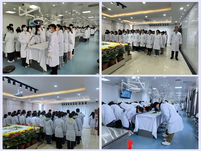解剖学是医学的重要专业基础课程,也是医员工较早接触的富有人文和生命医学教育特色的课程,蕴含丰富的思政元素。为持续推进课程思政与教书育人深度融合,深入挖掘遗体器官捐献教学素材,讲好遗体器官捐献者的故事,打造人体解剖学学科特色课程思政体系,2~3月份支部组织全体教师参与解剖学第一课---致敬无语良师、春分缅怀诵读活动、线上线下参与遗体告别仪式、现场见证志愿者办理遗体捐献、校园植树等形式多样的活动,用实际行动践行立德树人的根本任务,培养医员工具有“敬佑生命、救死扶伤、甘于奉献、大爱无疆”的新时代医疗卫生职业精神,助力推动公司具有医学特色的课程思政体系良性发展。