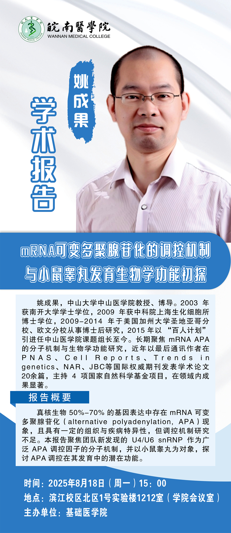 学术报告——mRNA可变多聚腺苷化的调控机制与小鼠睾丸发育生物学功能初探