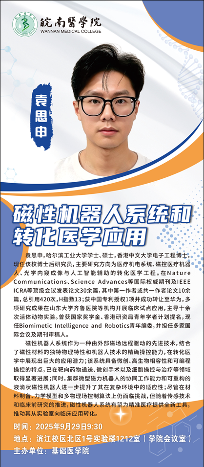 学术报告:磁性机器人系统和转化医学应用