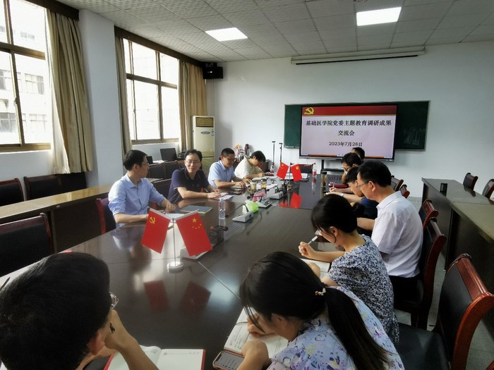 7月28日下午,公司党委组织召开学习贯彻习近平新时代中国特色社会主义思想主题教育调研成果交流会,校纪委委员、第二附属医公司党委委员、纪委书记吴金庭到现场指导,公司党政班子成员、全体党支部书记参会,会议由基础医公司党委书记、副经理马旭明主持。