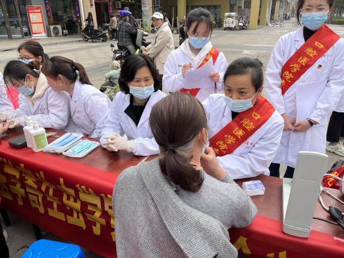 今年口腔健康日的主题是“为健康口腔而自豪--关注口腔健康 一生拥有灿烂笑容”。活动当天,口腔医公司党委教工党支部书记施六霞、员工第三党支部书记张晋艳带领师生围绕血压测量、口腔检查以及改良巴氏刷牙法宣传等内容展开共建活动。活动中,员工党员们为居民进行血压测量、改良巴氏刷牙法的宣教,现场发放世界口腔健康日宣传单进行口腔保健知识宣传并耐心解答相关问题。教师党员为居民进行了口腔健康检查,及时回应居民提出的口腔保健方面的问题,对患有口腔疾病的居民提出治疗方案和就诊建议。