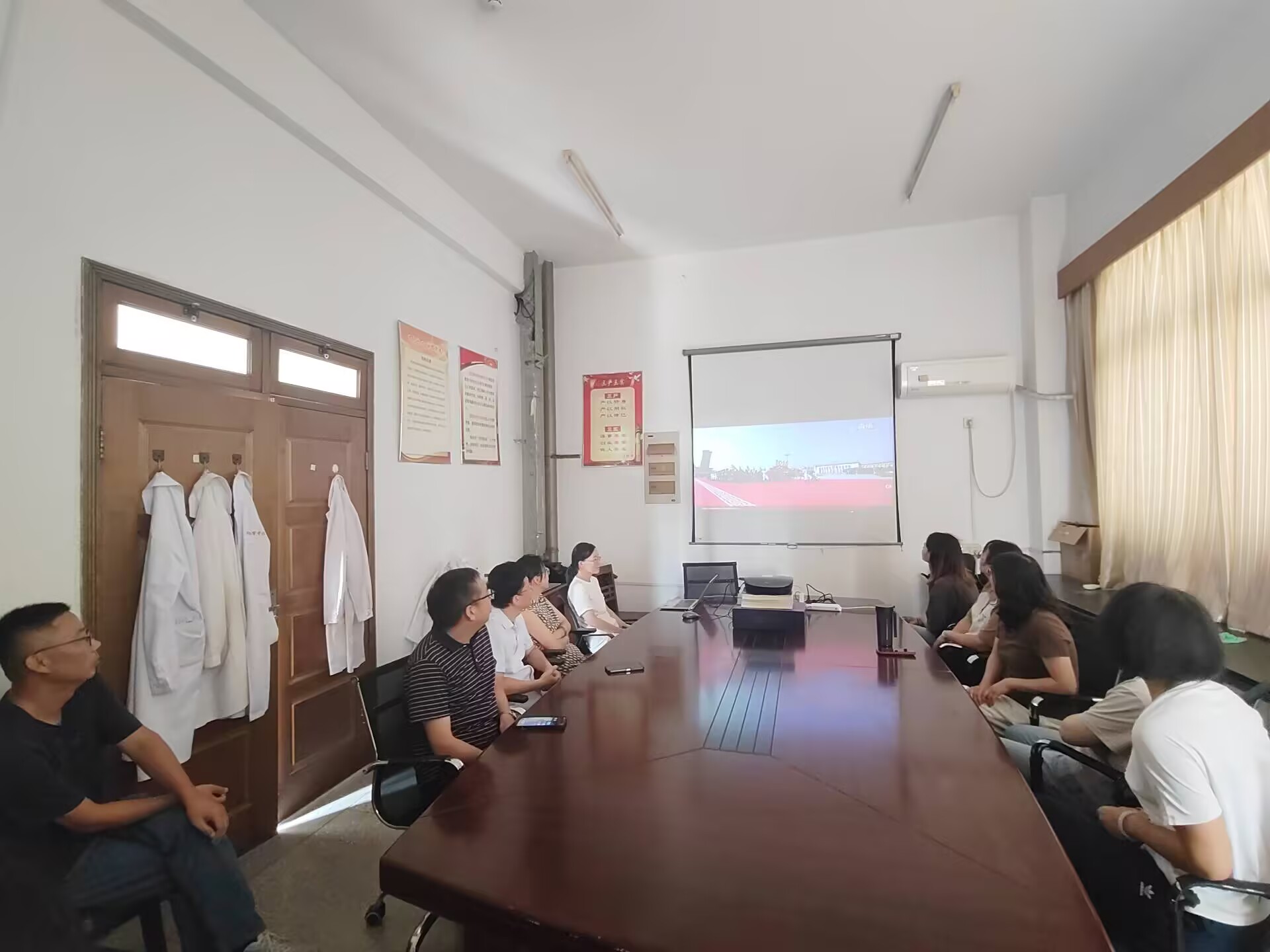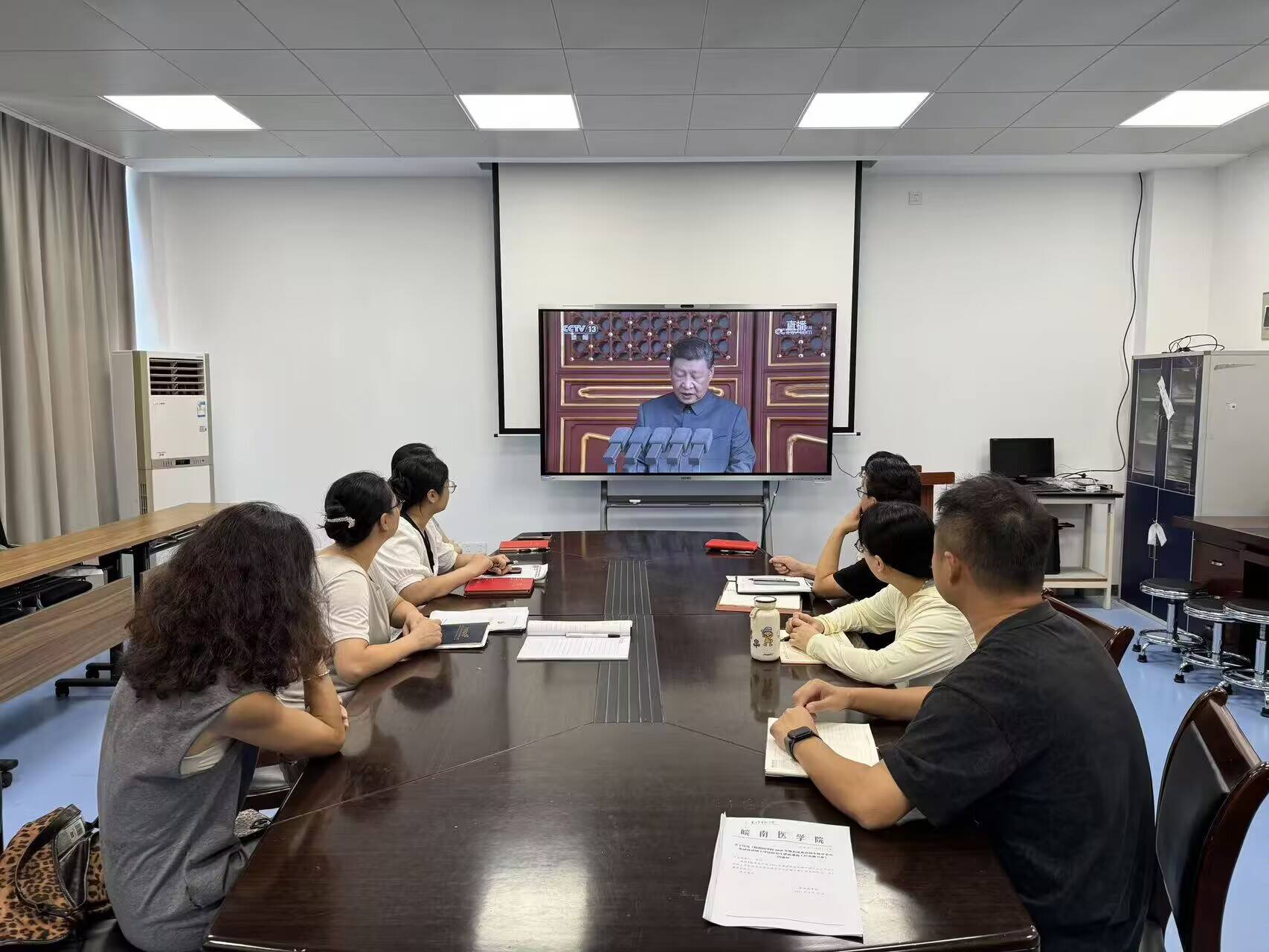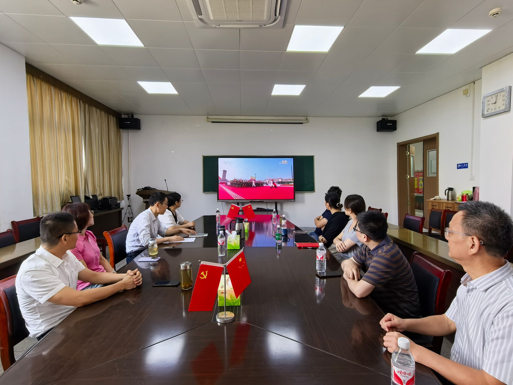 公司办公室和各党支部分别设置了集中观看点,组织师生进行集中观看。阅兵式上,45个方(梯)队依次通过天安门广场,涵盖空中护旗梯队、徒步方队、装备方队和空中梯队,展现了我国国防和军队现代化建设的辉煌成就。