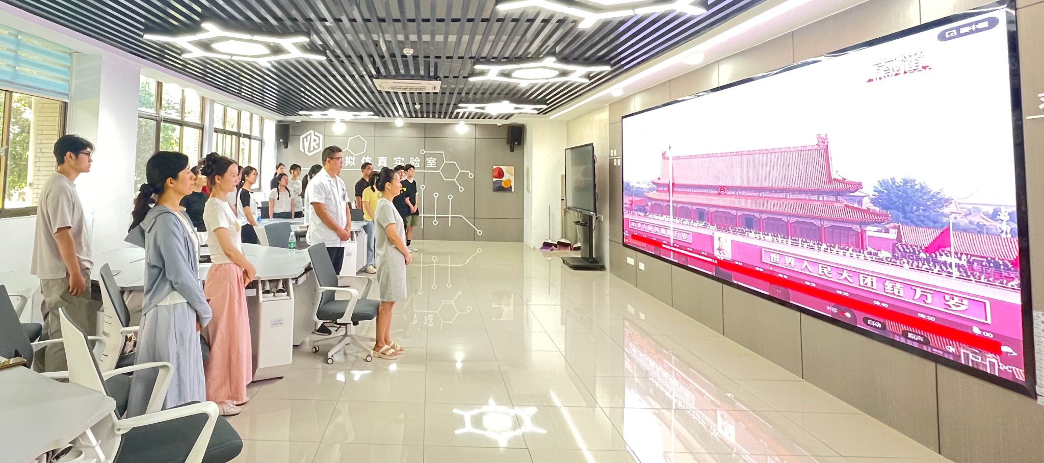观看现场气氛热烈,师生们凝视屏幕,不时爆发出阵阵掌声。许多师生表示,此次阅兵既是国防力量的集中展示,更是民族精神的时代传承。