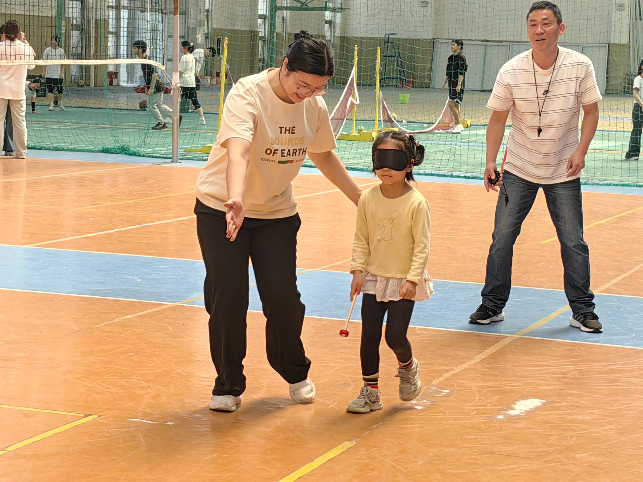“蒙眼敲锣”作为亲子项目,通过独特的游戏设计与互动模式,参与者需蒙上双眼,原地转若干圈后,在眩晕状态下凭借记忆与方向感摸索前行,尝试敲响目标铜锣。项目不仅考验亲子间的沟通能力,还能在共同完成任务的过程中,有效增进亲子间的情感交流与信任度。